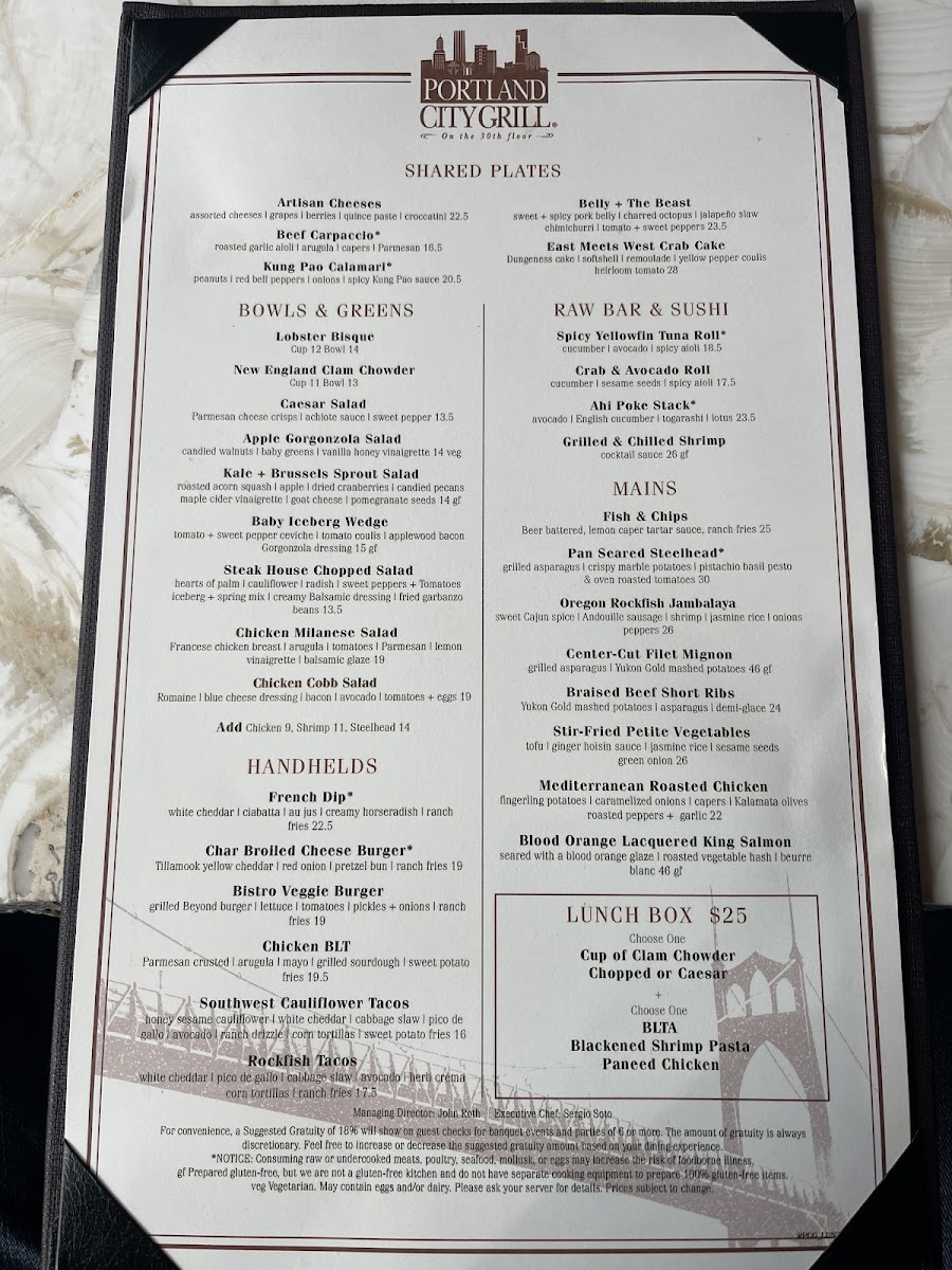 Located on the 30th floor of the Wells Fargo Center, Portland City Grill Menu offers an unforgettable dining experience with stunning views of the city. Whether you're in the mood for a juicy steak, fresh seafood, or something uniquely Pacific Northwest, the menu has something to satisfy every craving. Each dish is thoughtfully crafted using the finest local ingredients, ensuring that every bite is both flavorful and satisfying.